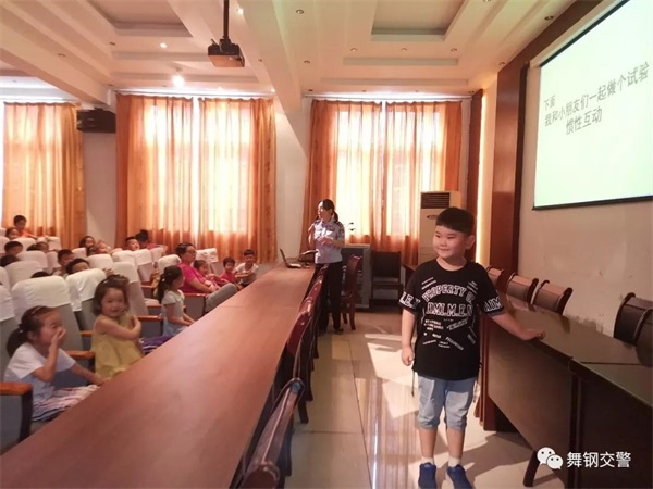 活動中,普法志愿民警結合幼齡兒童心理特征,用生動形象、活潑有趣的語言給孩子們上了一堂豐富多彩的交通安全課,圍繞過馬路、乘車等基礎的交通安全常識,向小朋友們進行了深入淺出的講解,教授他們正確認識交通信號燈及交通標示、標牌;并進行了“慣性”小實驗,讓孩子們充分理解了汽車剎車的慣性。