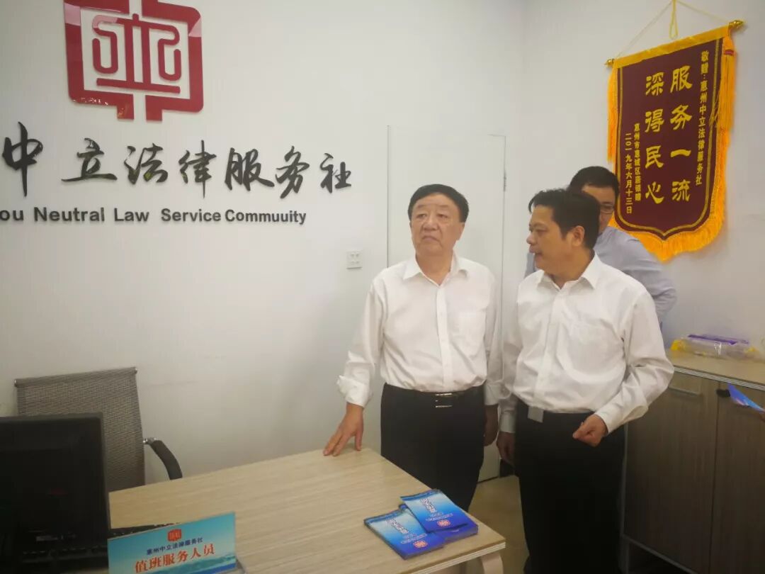 11月14日、15日,李承先一行赴惠州市法學(xué)會(huì),圍繞惠州市法學(xué)會(huì)弘揚(yáng)法治公益基金會(huì)、中立法律服務(wù)社工作開展情況進(jìn)行座談,并實(shí)地考察了惠州市大亞灣區(qū)法學(xué)會(huì)、法治文化長(zhǎng)廊?;葜菔形睍淈S志豪,惠州市委委員、市法學(xué)會(huì)會(huì)長(zhǎng)陳少青,大亞灣區(qū)委副書記、政法委書記,區(qū)社會(huì)工作委員會(huì)主任詹星等先后陪同考察。