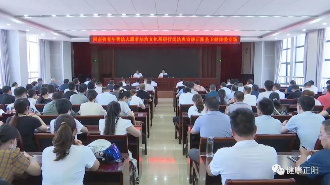 正陽縣青年普法志愿者法治文化基層行活動組委會成員單位負(fù)責(zé)同志,縣衛(wèi)健體委機(jī)關(guān)全體工作人員,鄉(xiāng)鎮(zhèn)衛(wèi)生院院長、副院長,縣直二級機(jī)構(gòu)班子成員聆聽輔導(dǎo)報告。