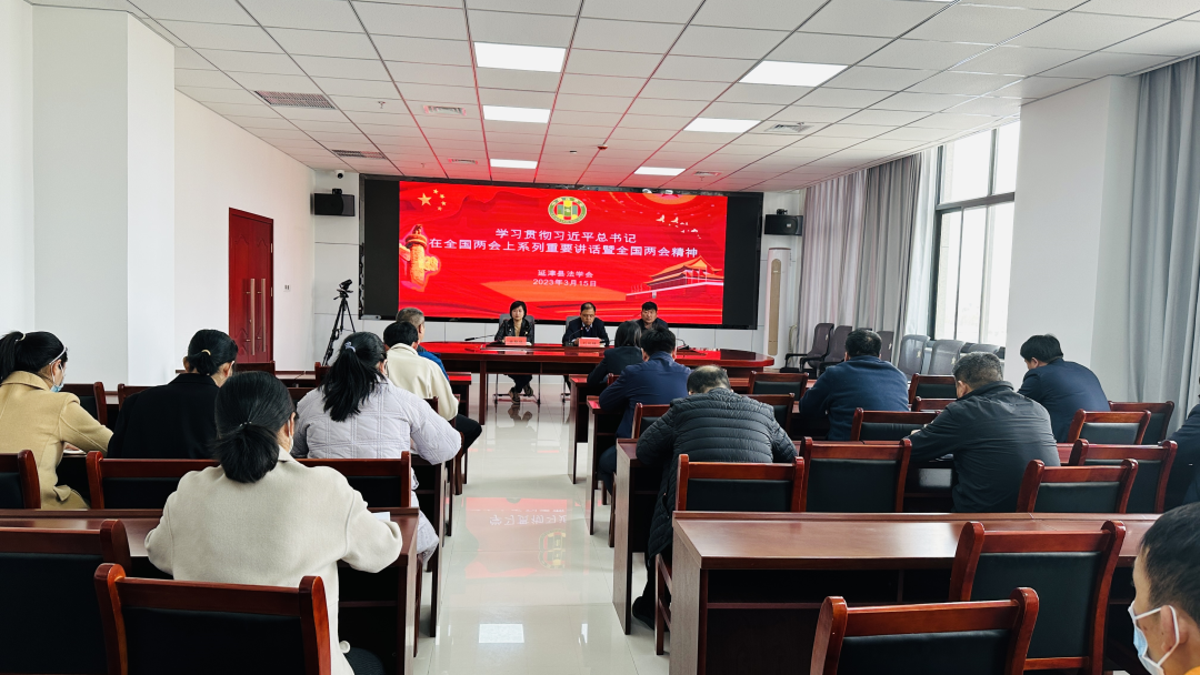 3月15日,延津縣法學(xué)會(huì)召開(kāi)會(huì)議,學(xué)習(xí)貫徹習(xí)近平總書(shū)記在全國(guó)兩會(huì)上系列重要講話(huà)和全國(guó)兩會(huì)精神。縣委政法委副書(shū)記、縣法學(xué)會(huì)副會(huì)長(zhǎng)鄭艷艷主持會(huì)議。